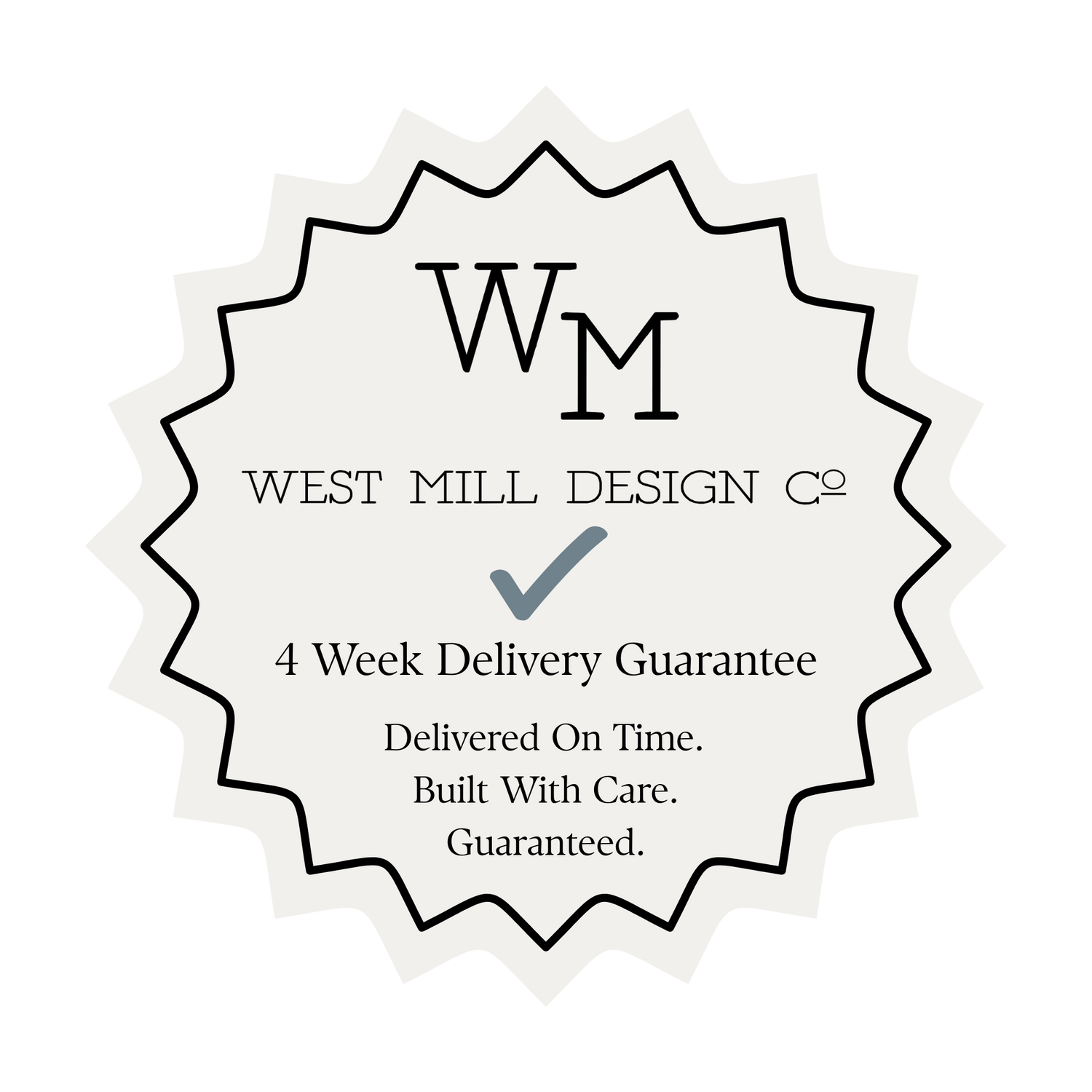 At West Mill Design Co., we know you're not just buying a table—you're creating a space for connection, memories, and everyday life. That’s why we stand behind our promise to deliver every piece of furniture to your home within 4 weeks or less from the time your order is finalized.